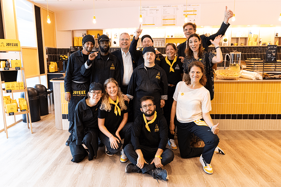 Pour Yann Bucaille-Lanzerac, Président du groupe Café Joyeux, « l’accueil des équipes de Servier a été tout simplement incroyable ! ». En favorisant l’implant au sein de notre siège social de cette famille de café-restaurants qui contribue à l’inclusion professionnelle de personnes en situation de handicap mental et cognitif, Servier souhaitait vivre au quotidien son esprit d’engagement pour les personnes vulnérables. Inclusion, bienveillance, bonne humeur, ouverture d’esprit, sourire… tels sont les mots qu’utilisent les collaborateurs pour décrire ce lieu de pause géré par une équipe engagée réunissant des personnes en situation de handicap, des encadrants et une manager.